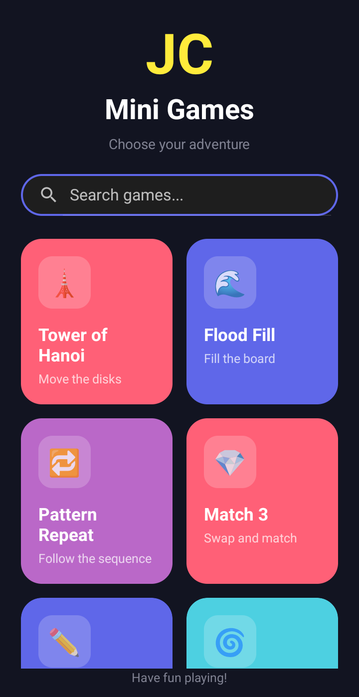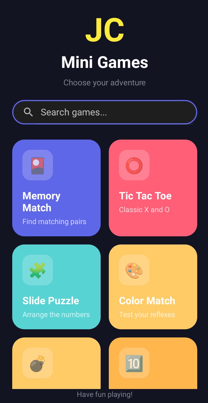 iPhone Users: Visit moneyenr123.github.io/JC-Mini-Games, tap Share, then "Add to Home Screen" for the best experience.